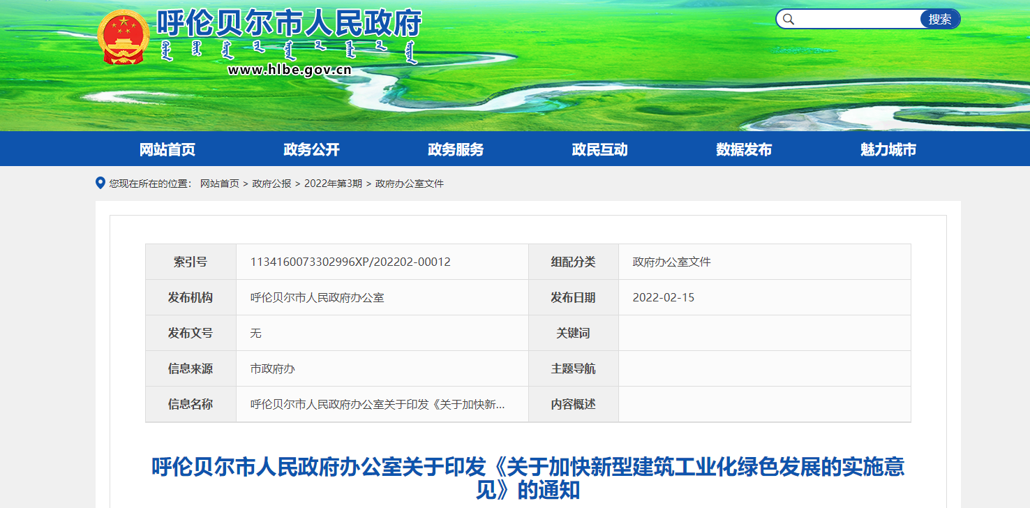 2022年裝配式建筑占比力爭達(dá)到15%,以后逐年提高,到2025年,裝配式建筑面積占比力爭達(dá)到30%。2023年起,新建裝配式建筑要全面實(shí)行裝配式全裝修,到2025年,呼倫貝爾市中心城區(qū)商品房裝配式裝修率力爭達(dá)到30%以上,旗市商品房裝配式裝修率力爭達(dá)到15%以上。